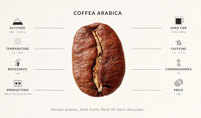L’Arabica, deux fois moins caféiné et beaucoup plus parfumé du fait de son développement racinaire plus important et plus profond que celui du Robusta, va donner des tasses de cafés beaucoup plus raffinés et équilibrés en bouche. On va retrouver notamment des notes florales, fruitées et chocolatées qui sont caractéristiques des cafés Arabica et qui font le bonheur de l’amateur de café filtre, piston et autres préparations en méthode douce.